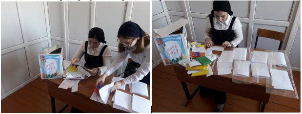 05.10.2019В рамках праздника День Учителя было запланировано ряд мероприятий на уровне школы. С 03.10-04.10 в коридоре школы функционировал почтовый ящик «Праздничная почта». Учащиеся школы, родители в течение данного времени могли отправлять праздничные пожелания учителям. 05.10.2019 года письма были рассортированы и розданы адресатам.