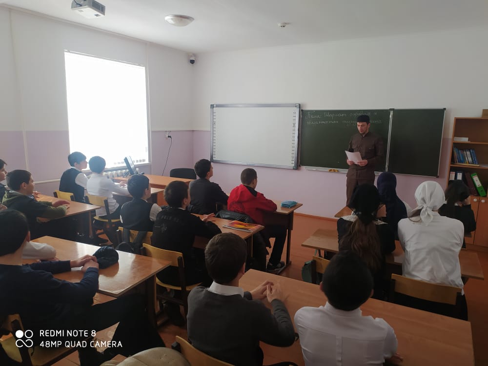 27.02.202126.02.2021 года в школе педагогом по ДНВ проведена беседа с обучающимися 7-10 классов на тему «Шариат: права и обязанности мусульман».