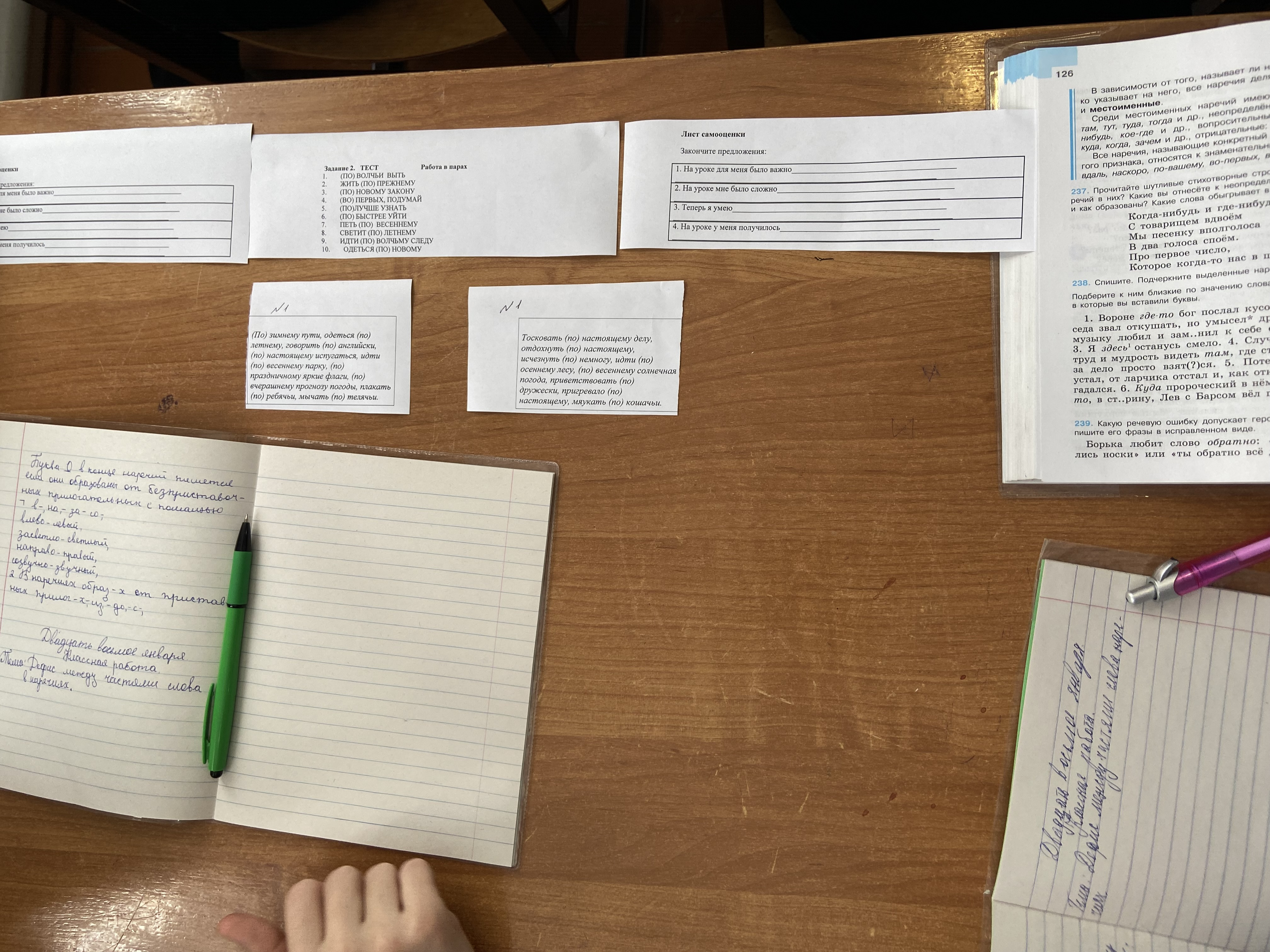 Целью данного урока являлось ознакомление учащихся с условиями дефисного написания наречий, развития умения применять полученные знания на практике, а также реализация воспитательных задач:привитие любви к русскому языку, воспитание чувства взаимопомощи и сотрудничества.Охвачено: 16 учащихся.О своих впечатлениях от урока поделилась учащаяся этого класса Саламова Айдима.«Нам очень интересно было находить наречия с дефисным написанием в стихотворных текстах русских поэтов, угадывать части речи, соревноваться в определении верных или неверных утверждений. Особенно интересно было составлять таблицы на правописание наречий. В конце урока мы составили кластер и наклеили на доску лепестки ромашки, где показали насколько понятным и интересным был урок».Итогом урока стала игра – викторина по теме "Наречие".
