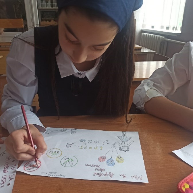 13.04.2022В рамках проведения профилактических мероприятий по результатам СПТ в МБОУ «Ники-Хитинская СШ» 13.04.2022 года учителем ИЗО совместно с классными руководителями был проведен конкурс рисунков на тему «Мы за здоровый образ жизни».В начале конкурса классными руководителями была проведена беседа с учащимися о вреде здоровью наркотических средств и психотропных веществ.В конкурсе приняли участие 16 учащихся, рисунки учащихся были вывешены в коридоре школы.