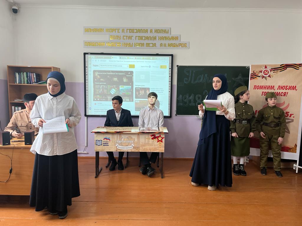 22.02.2023В рамках федерального проекта "Успех каждого ребенка" национального проекта "Образование" 22.02.2023г. в МБОУ "Ники-Хитинская СШ" провели патриотическое мероприятие "Парта Героя". Главной целью мероприятия была создание условий для формирования у обучающихся уважительного отношения к истории Отечества, героическому прошлому и настоящему нашей страны, где основными задачами были содействие в личностном самовыражении, гражданском образовании и патриотическом воспитании обучающихся. Великая Отечественная война началась 22 июня 1941 года - в день, когда на территорию СССР вторглись немецко-фашистские захватчики, а также их союзники. Она длилась четыре года и стала заключительным этапом Второй Мировой войны которая началась в 1939 году. Это война унесла примерно 16 миллионов человеческих жизней. Мероприятие было посвящено открытию Парты Героя , офицера Красной армии , жителя с.Ники-Хита Азимова Нурди Абдулхалимовича, который ушел в 1941 году добровольцем на фронт. Мужественно сражался и после тяжёлого ранения в конце 1944 года вернулся к своим родным в г.Темиртау Казахской АССР, которые были депортированы. В 1953 году там же и умер. На мероприятии присутствовали гости, начальник ВУС Регитинского сельского поселения Музаев Анвар Ахметович, депутаты Единой парти России Косумов Расул Абузагирович и Бадаев Асламбек Мамадсаланович, а также были приглашены родственники Азимова Н.А. Дети рассказали о доблестном жизненном пути героя, о подвиге и храбрости, читали стихи. Право открыть Парту Героя имени Азимова Н.А. предоставили начальнику ВУС Музаеву А.А., племяннице Азимовой Заре Магомедовне. Право сидеть за Партой Героя предоставили ученикам 11 класса, отличникам Саламову Джамбулату и Косумову Магомеду. Словами наставления выступил заместитель директора по учебно-воспитательной работе Магомедов Сергей Магомедович. Звучала песня "Журавли" в исполнении Марка Бернеса, которая отражала боль миллионов людей. Автор текста (стихотворения) песни Расул Гамзатов позже вспоминал.... "Стихи не возникают из мелочей, они начинают звучать в такт с чувствами, родившимися после глубоких потрясений. Они постучались в мое сердце, скорбной чередой прошли перед глазами и --- на миг показалось--- превратились в белых журавлей. В птиц нашей памяти, грустной и щемящей нотой взрывающихся в повседневность...." "Я считаю что такие мероприятия позволяют формировать общественно - политическую грамотность и следовательно способствует развитию российской идентичности, осознанию причастности к героической истории Отечества" - сказал Музаев Анвар Ахметович.
