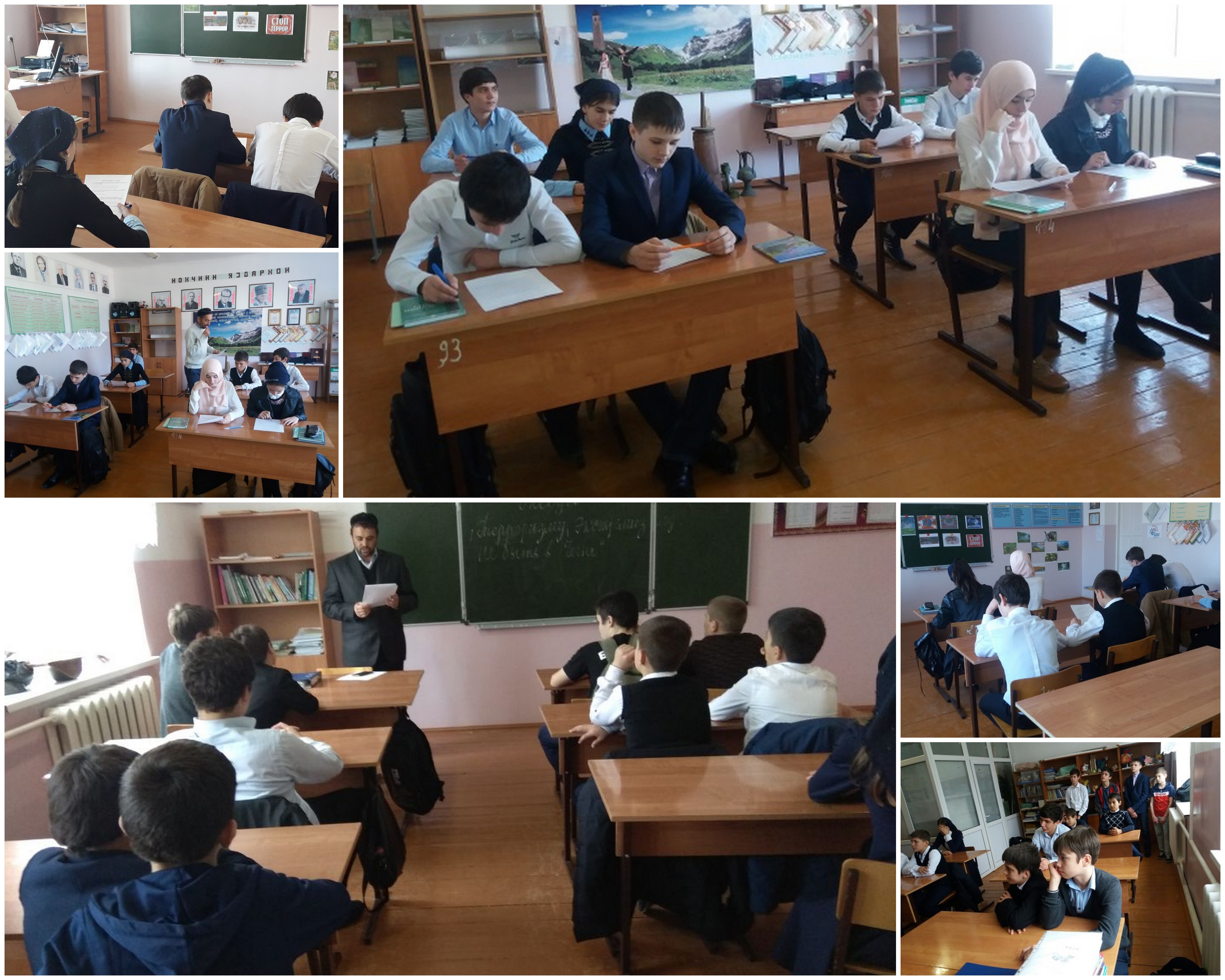 13.11.2017В рамках реализации протокольного поручения Главы Чеченской Республики Р.А.Кадырова № 01-04 от 27.01.2015 года 9 ноября в школе проведена общешкольная беседа на тему «Терроризму, экстремизму не быть в Чечне». Беседа сопровождалась презентацией. Учащиеся ознакомлены с правилами поведения в ситуациях, связанных с терроризмом, выполнение заданий по типу «закончи предложения».