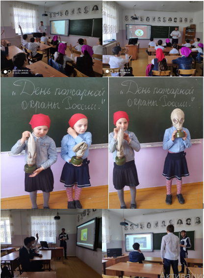 С целью пропаганды культуры безопасности жизнедеятельности среди подрастающего поколения, практической отработкой навыков безопасного поведения школьниками в различных условиях, а также популяризации профессий спасателя и пожарного в школе проведен Всероссийский урок на тему «День пожарной охраны России».